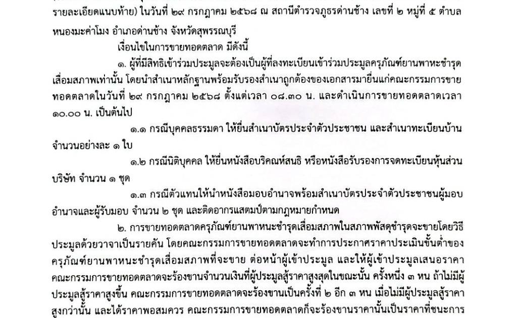 ประกาศขายทอดตลาดครุภัณฑ์ยานพาหนะชำรุดเสื่อมสภาพ