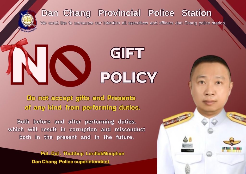 พ.ต.อ.ทัตเทพ เลิศลักษณ์มีพันธ์ ผกก.สภ.ด่านช้าง ร้อยเวร 20 เรียกสายตรวจผลัด ใหม่-เก่า ชี้แจงข้อราชการ กำชับการปฏิบัติตามโยบายการต่อต้านการรับสินบน (Anti- Bribery Policy)
