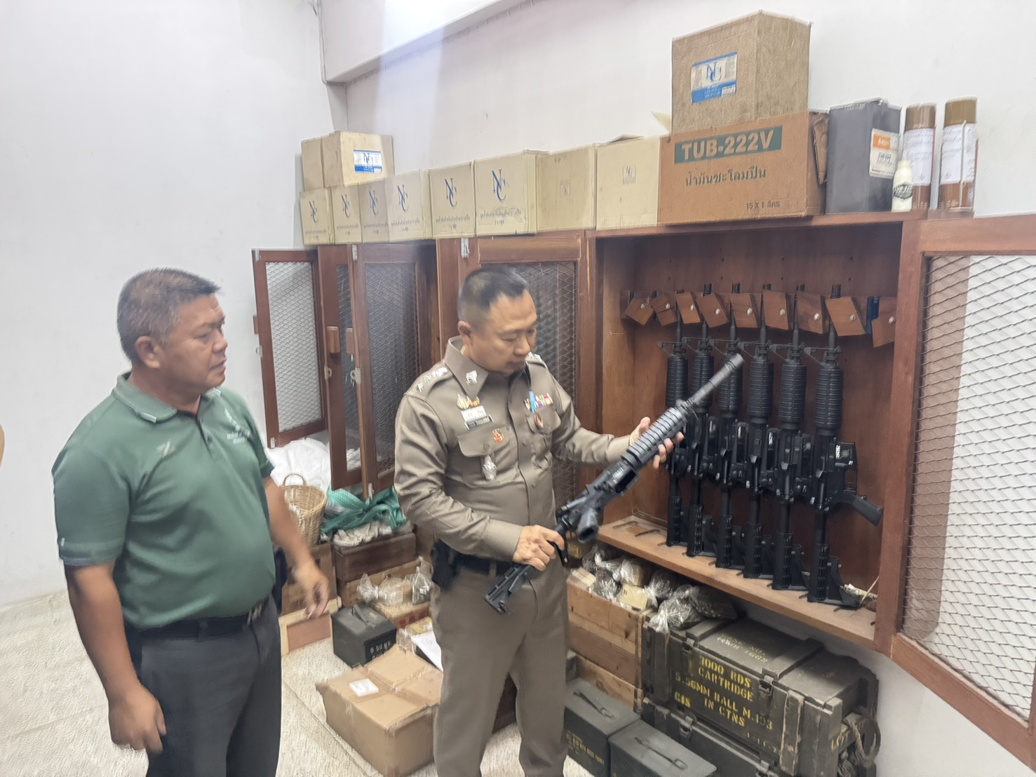 ผกก.สภ.ด่านช้าง และเจ้าหน้าที่พัสดุ ร่วมตรวจคลังอาวุธปืนของสถานีตำรวจภูธรด่านช้าง